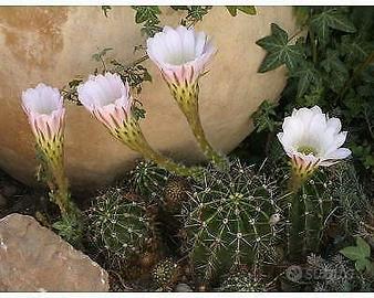 Gli echinopsis sono tra le cactacee più belle e di facile coltivazione; tutte diffuse in natura nelle zone semidesertiche dell'America centrale e meridionale; si tratta di cactacee dalla forma "classica" ovvero fusti globosi o tubolari, con piccole areole sul bordo delle costolature, ricoperte di spine di varia misura. In alcuni casi possono formare piccoli cuscini costituiti da singoli fusti alti al massimo 3-6 cm, oppure producono fusti singoli, alti fino a 35-45 cm. Il colore del fusto è verde, chiaro o scuro, ciò che accomuna tutte le piante sono i fiori: per tutta l'estate sulle areole nella parte alta delle piante si producono grossi boccioli ricoperti da spine tanto sottili da sembrare peluria marrone; nell'arco di alcuni giorni ogni bocciolo si sviluppa in grandissimi fiori a forma di imbuto, di colore rosato, profumati; ogni singolo fiore sboccia al mattino e si schiude la sera, e appassisce nell'arco di 2-3 giornate. Le piante si distinguono in maschi e femmine.