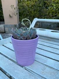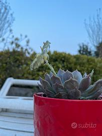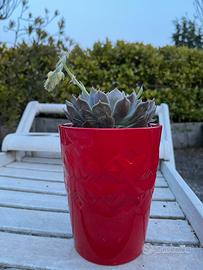 Vendo una pianta grassa a forma di stella quasi fiorita in due potra vasi a scelta; rosso o lilla