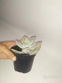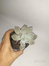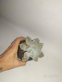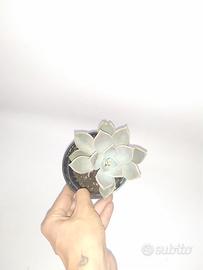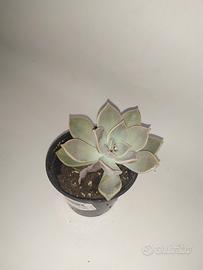 La particolarità della Echeveria lilacina particolarità è il colore grigio-azzurro con riflessi lilla, i quali le devono il nome di “lilacina”. Le sue foglie disposte a rosetta sono carnose e piatte, coltivata molto spesso in esterno in fioriere come pianta ricadente.
