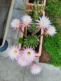 Vendo piante grasse Echinopsis di colore bianco rosato. Sono disponibili anche piante della stessa specie con fiori bianchi (trovate l'annuncio pubblicato). ATTENZIONE: LEGGERE BENE, QUI DI SEGUITO, CIÒ CHE VERRÀ INVIATO. Il prezzo di 2 euro si riferisce a una pianta di 6/7 cm di altezza e diametro fuori terra, a radice nuda. Potete vedere un esempio di ciò che riceverete nelle foto n. 1 e 2. Le foto 3/4/5/6 si riferiscono a piante di qualche anno in vasi molto grandi da cui ricavo le nuove piante che verranno inviate. Sono foto esplicative per mostrare come diventeranno le piante che state acquistando. La pianta fiorisce in genere 4 volte all'anno nel periodo maggio/ottobre, cresce e si riproduce velocemente. Produce grandi fiori profumati a campana di circa 25 cm di colore bianco rosato. Resiste al freddo anche se non protetta e si riproduce rapidamente. Sono disponibili piante di ogni altezza, con prezzi differenti a seconda della dimensione. In caso di acquisti multipli non mancherò di effettuare uno sconto personalizzato e invierò in omaggio, se gradite, alcune piante di qualche mese. Per altre informazioni o chiarimenti, Vi prego di contattarmi.