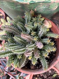 Talee non radicate di Tavaresia. Piccola pianta succulenta che produce un grande fiore giallo