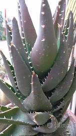Vendo pianta grassa sottospecie aloe. Ne possiedo una alta 70 cm che si moltiplica annualmente (ultima foto). Per questo ne ho diverse, sono molto facili da accudire, non necessitano di molte cure e poca acqua, sono le piante ideali per le prossime estati. Io te ne propongo una alta circa 20 cm dal suolo più radici che ti spedisco confezionata col suo terriccio in un involto di tessuto, avvolta in carta in una scatola di cartone. E' una pianta robusta e può affrontare benissimo il viaggio. Una volta nella sua nuova casa non dovrai far altro che scartarla con cura e interrarla in un vaso possibilmente di terracotta fino alla foglie verdi. Non innaffiare per i primi 3 giorni. Questa è la stagione giusta per il rinvaso. In estate fiorisce pure.