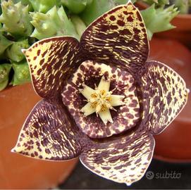 1 talea di 10 cm Pianta Stapelia variegata con fusti penduli senza spine . Ideale per chi è alle prime armi con le succulente. - Facile da radicare. - Fusti carnosi e verdi. - Aspetto decorativo.