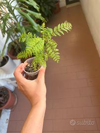 Piantina giovane di jacaranda albero ornamentale da giardino bellissimo con generose fioriture lilla, adatta ai climi temperati ( massimo 600 m di altezza slm) o altrimenti da coltivare in serra o veranda come bonsai o in vaso.