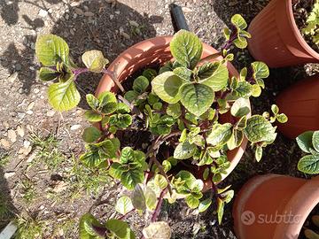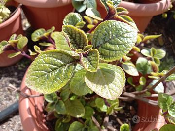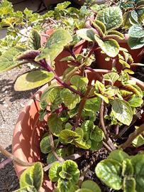 Pianta erbacea perenne, procumbente, molto interessante per le belle foglie ellittiche e di color verde scuro nella pagina superiore della foglia e bordò-viola scuro nella pagina inferiore e sugli steli.