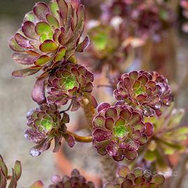 Aeonium arboreum, per il colore inconfondibile delle sue foglie che raggiungono tonalità molto vicine al nero. Di rapida crescita e di facile coltivazione succulenta, vanta origini nordafricane. Può raggiungere l’altezza e la larghezza di circa un metro in poco tempo, formando un originalissimo “cespuglio” che ricorda un bouquet di rose nere: i fusti carnosi infatti hanno foglie lunghe in alto e strette, con apice arrotondato e una disposizione a rosetta di un insolito colore scuro.