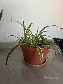 Pianta ragno - falangio Pianta di facile cura e purificatrice d’aria Adatta sia da esterno che da interno Nel vaso ci sono 4 piante.