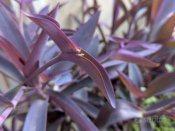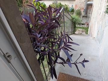 Tradescantia pallida (miseria viola). Talee forti e di un viola stupendo. Fa piccoli fiori rosa. Se portata all'interno diventa più verde, all'esterno (anche in inverno) resta molto viola. Bellissima e decorativa. Talee a partire da 2 euro.