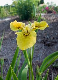 pianta palustre fitodepurante per laghetti o mini pond, esteticamente molto gradevole con i suoi grandi fiori gialli con venature marroni. Ibrido della più nota varietà di iris pseudacorus. Pianta giovane in vaso/radice nuda a seconda del periodo da mettere successivamente a dimora. Eventuali spese di spedizione a carico destinatario. Si accetta pagamento paypal