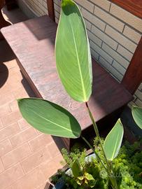 Thalia Dealbata 15 euro. Rizoma che ha già radici e foglie. Si tratta di una pianta palustre che in primavera fa un fiore che si allunga più in alto delle foglie.