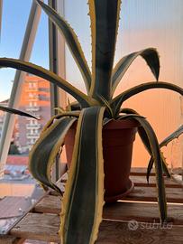Varie piante di Agave nelle due varietà: AMERICANA o VARIEGATA di medie / grandi dimensioni, comprensive di vaso, per ritiro di persona in Torino, zona Piazza Sabotino. Vaso D22-24-26cm. Altezza h50-75-85cm. Adatte per esterno. Agave è una pianta succulenta affascinante, caratterizzata da foglie spesse e carnose di un verde intenso con sfumature gialle. Resistente e facile da curare, è perfetta per aggiungere un tocco esotico sia in giardino che in appartamento. Disponibili varie piante, possibile venire a vederle di persona e scegliere, alcune anche con polloni basali, uno o due germogli. Richiesta da 15 a 40 euro, a seconda della pianta.