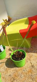 Vendo piante carnivore di mia produzione da seme. Sarracenia flava antropurpurea. Gli ascidi raggiungono 55 cm di altezza e dopo qualche anno fioriscono. Disponibilità 4 vasetti. Prezzi da sinistra a destra, 12€ (grande), 12 € 2 rizmi, 10 € e 7 € 2 rizomi.