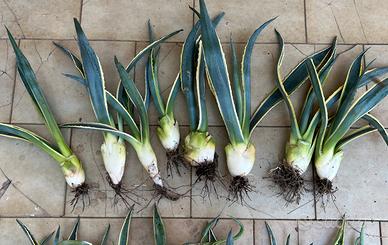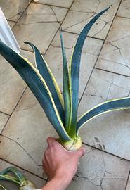 Piantine medie e grandi di agave americana variegata Pianta estremamente rustica, tollera elevate temperature e brevi gelate fino a circa -5°C o -10°C e richiede pochissima acqua solo in estate. Dove viene messa vive tranquillamente e resiste tranquillamente all’urina degli animali. 4€ pianta grande 2€ pianta piccola