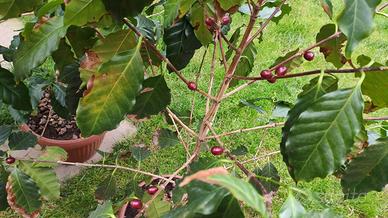 Vendo due piante di caffè arabica, in coppia o singolarmente, alte 2.50m. Come si vede dalle foto le piante sono in ottima salute, fioriscono annualmente ed è stato già possibile sperimentare tutto il ciclo di produzione del caffè. Non spedisco ma posso concordare un punto di incontro in Lombardia.