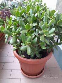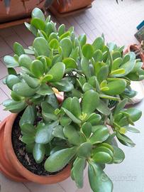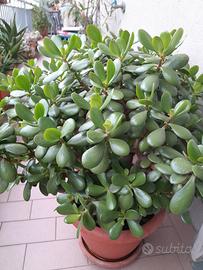 Piante di crassula di varie dimensioni. È una pianta succulenta sempreverde che si può tenere in casa, sul balcone o in giardino. Non ha bisogno di molte cure. In primavera fa dei piccoli fiori bianchi. Le misure in cm. (altezza comprende anche la misura del vaso).