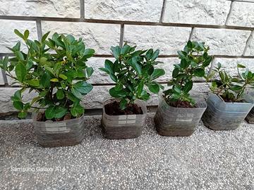 Q. 10 piante, in ottimo stato vegetativo, sempreverde, portamento eretto, compattezza della chioma, corteccia che vira dal verde dei rami giovani al colore più scuro dei rami degli anni precedenti. altezza da 30 a 60 cm, 10 € cadauno. Utilizzabile per creare forme ornamentali geometriche, siepe, bordature, ecc. Spese di spedizione a domicilio e tracciabile escluse, spedizione senza vaso con zolla di terra in cellofan pronta all'interramento o invasamento.