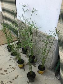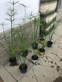 Vendo piante falso papiro. Il falso papiro è una pianta rustica che predilige ambienti acquitrinosi, umidi e soleggiati e sopporta bene anche temperature di qualche grado sotto lo zero se immerso in acqua. In alternativa tenere le piante in un ambiente chiuso con il sottovaso sempre pieno d’acqua. Altezza: 50cm circa. Disponibile la spedizione.