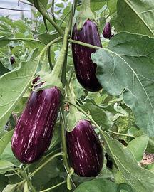 Melanzane varietà : lunga viola scuro , tonda viola scuro , striata , bianca .