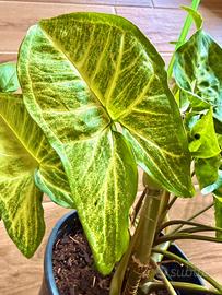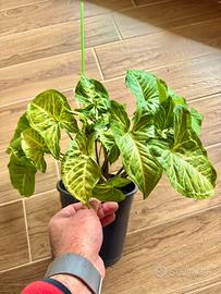 Piante di Syngonium Podophyllum, in perfetta salute e piena crescita, mettono continuamente nuove foglie.