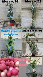 Disponibilità anche di MORE, MORE A SPALLIERA, MIRTILLO GIGANTE AMERICANO, MIRTILLO ROSA, LAMPONI (TAYBERRY) per misure costi e ulteriori foto non esitate a contattarmi.