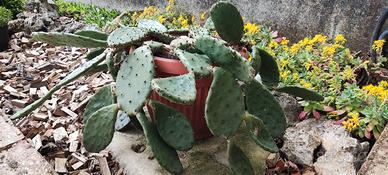 Opuntia humifusa di 4 anni in vaso da 30 cm. alto 28 cm. con apertura totale di 80 cm. Sebbene al momento non siano visibili fiori sulla pianta nella foto, questa specie produce fiori gialli di 5-8 cm. (Vedi foto di esempio) La fioritura avviene nei mesi di giugno. È una delle poche piante grasse in grado di sopravvivere all'aperto anche nel Nord Italia, resistendo a temperature molto rigide, fino a -10°C o -20°C in condizioni di scarsa umidità. Richiede una posizione luminosa, soleggiata e un terreno ben drenato per evitare ristagni idrici, che potrebbero risultare dannosi, specialmente durante i periodi di gelo. Ritiro a mano.