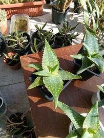 Piante grasse di Aloe saponaria o maculata. Adatta ai piccoli spazi come terrazzi essendo di dimensioni ridotte, cambia colore in base all'esposizione. Come le aloe è usata in farmacopea (scottature, caduta capelli, infezioni gola, ecc.,)