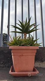 Aloe matura: Pianta grande e sviluppata in altezza, con un vaso pieno di numerosi polloni (figli) alla base.