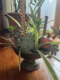 Vendo una bellissima composizione di piante grasse nel vaso di ottone, con le candele anche opzione natalizia