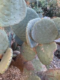 Opuntia robusta è una pianta grassa succulenta alta sino a 1,5 m., ramificata, dotata di pale grigio-azzurre, orbicolari o quasi rotonde larghe e lunghe sino a 40 cm., con areole sparse provviste di 2-6 spine rigide chiare su glochidi scuri.