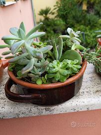 Mix di varie piante grasse in cocci di terracotta antichi