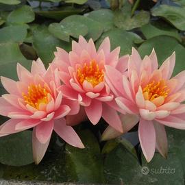 vendo piante di ninfea rustica Colorado. Come da ultima foto sono piante molto grandi. Ogni pianta copre Quasi un metro quadrato di superficie , sono pronte a fiorire questa stessa primavera. Fiore salmone grande, fiorisce da Aprile a Novembre. Ho anche palustri da fiore e sommerse .