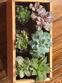 Composizione di 6 piante succulente già radicate complete di contenitore in bambù