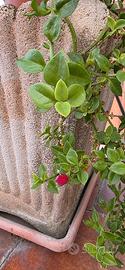 Piantina di aptenia in vaso. E' una talea che è stata fatta dalla pianta madre (1a foto che correda l'annuncio) quella nel vaso a calice bianco. Vi mostro la pianta madre per mostrarvi come la pianta (se collocata in un vaso spazioso) cresce molto e dà una bella cascata di fiorellini fucsia. Il ritiro è in zona tiburtina e piu precisamente in via tancredi cartella. Il costo è di 5 euro