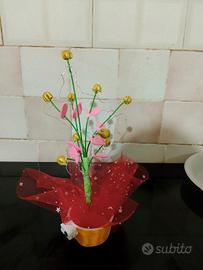 piantina di mimosa interamente fatta a mano, che si illumina con bellissimi led colore rosa,con fiorellini mimosa dorati e foglioline rosa.ottima idea regalo per la festa della donna