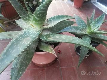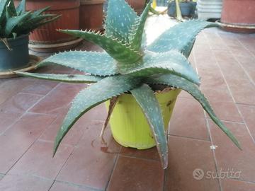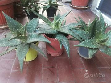 Piantine di Aloe vera maculata completa di vaso in plastica, ha bisogno di pochissime cure, si moltiplica moltissimo, non teme l'inverno, noi le teniamo sul balcone tutto l'anno e siamo a Milano. Ha proprietà antinfiammatorie e idratanti, può essere usata per lenire la pelle irritata e lenire il prurito da punture di insetti, é indispensabile sulle lievi scottature. Sono prodotte da me. Misure larghezza 32 cm circa Altezza 23 cm circa Per acquisti di più piante faccio uno sconto