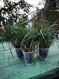 Vendo piantine di Convallaria Japonica confezionate come da foto. Pianta ideale per bordure di aiuole (foto) o alberi, nulla vieta che possa anche essere usata per piccole superfici di prato, eventualmente da rasare secondo la mia esperienza a 10/15 cm. di altezza. Pianta molto resistente da collocare a dimora in autunno o primavera, di colore verde scuro, sempreverde e resistente al freddo. 1 euro a confezione.