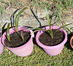 Piante di palma tipo classico Chamaerops Excelsa. Piantine piccole in vaso, ben attecchite e facilmente trapiantabili euro 5 l'una. Piante con tronco il prezzo varia al variare della lunghezza del tronco. Ad es. pianta da 60 cm. di tronco (circa 105 cm. con foglie) euro 60, pianta da 20 cm. di tronco (circa 60 cm. con foglie) euro 20. Disponibilità anche di piante molto alte da espiantare. Prezzi ottimi in generale e, a maggior ragione, considerando il fatto che cercando su internet o nei vivai i prezzi vengono calcolati misurando l'altezza comprensiva di foglie il che alza di molto il prezzo finale. La palma non subisce particolari traumi al momento del trapianto in quanto il suo apparato radicale è formato da una miriade di piccole radici che attecchiscono velocemente nel nuovo terreno d'impianto.