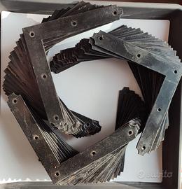 Il lotto comprende 60 staffe a forma di L da 190 mm per lato con una larghezza di 30 mm. Si tratta di staffe angolari già utilizzate di colore nero, ottime per fissare mobili oscillanti e prolungarne la durata, come tavoli, scrivanie, letti, scaffali, finestre, porte in legno o altro.