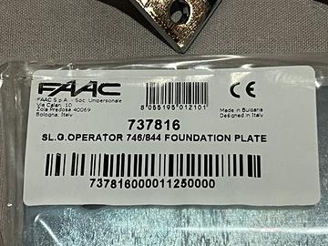 Vendo piastra di fondazione originale FAAC modello 737816, nuova mai utilizzata. Compatibile con motori FAAC 746 e 844 per cancelli scorrevoli. Completa di angolari e viteria, pronta per installazione. Ideale per installazioni nuove o sostituzioni.