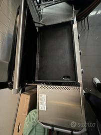 Vendo per inutilizzo, stupenda Weber SLATE GPD 76 cm Premium Griddle, usata forse 3 volte, come nuova, piastra professionale ideale per chi vuole portare le grigliate a un livello superiore. 🔥 Prestazioni elevate Dotata di 3 bruciatori in acciaio inox con una potenza totale di 10,6 kW, raggiunge oltre 260 °C garantendo una distribuzione uniforme del calore su tutta l’ampia superficie di cottura (3483 cm²). Perfetta per cucinare carne, pesce, verdure e molto altro in modo omogeneo. 🍳 Qualità e praticità La superficie in ghisa smaltata antiaderente è pronta all’uso e facile da pulire. Il display digitale della temperatura permette un controllo preciso durante la cottura, mentre la vaschetta raccogli-grasso extra-large semplifica la manutenzione. 🛠️ Struttura solida e completa * Dimensioni coperchio aperto: 128 x 180 x 67 cm * Dimensioni coperchio chiuso: 100 x 180 x 59,5 cm * Peso: 71 kg * Alimentazione: Gas GPL (bombola ricaricabile non inclusa) * 2 ripiani laterali per preparazione * Ripiano portautensili con tappetino lavabile * Armadietto chiuso per lo stoccaggio * 2 ganci per utensili 🔄 Facile da spostare Dotata di 4 ruote, di cui 2 orientabili e 2 con blocco, per muoverla comodamente e in sicurezza. Vendo per inutilizzo, solo scambio a mano!