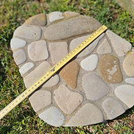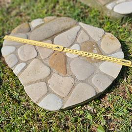 Piastre artigianali in cemento "ricoperte" di pietre/sassi ideali per creare comodi e pratici vialetti/attraversamenti in giardino. Veramente, veramente BELLE. Disponibilità massima 12 pezzi. 7 euro a piastra.