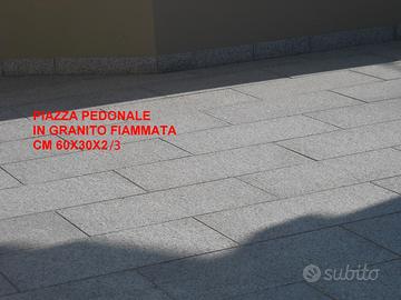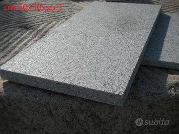 3.) Granito grigio chiaro, dim. cm 60x30xsp.1,5/2/3, superficie fiammata.