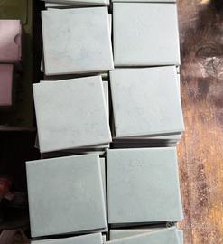 Disponibili n234 piastrelle (2,3mq) 10x10 colore verde azzurrato, con venature a rilievo.
