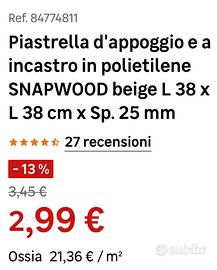 Piastrelle on propilene effetto legno ad incastro da appoggio per giardino, box, cantina 38x38x25mm 22 piastrelle Vendo a 2 euro c.una