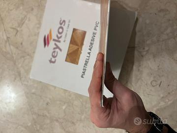 Piastrelle adesive tipo parquet in PVC. 30 x 30 cm (1,5 mm di spessore) Posseggo 14 pacchi per un totale di 28 mq circa. Vendesi in blocco €120. Ogni pacco contiene 22 piastrelle. Prezzo non trattabile Cioè €4,28 al mq.
