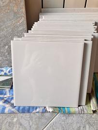 Vendo due tipologie di piastrelle. Prima foto: bianco con venature. 8 piastrelle. Formato 25x20 Seconda foto: bianco lucido. 17 piastrelle. Formato 20x20.