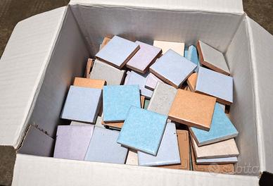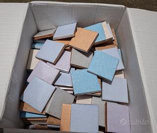 Piastrelle colorate formato 5x5 (circa 210) 0,5mq, peso 4.8 kg. Tozzetti colorati ditta Ceramgres 10 colori misti.
