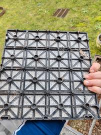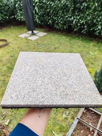 Piastrelle da esterno 29 X 29. Sono 36 in totale. Qualcuna di essa è crepata o ha qualche angolo saltato ( saranno su e giù 4/5). Sono state sempre fuori quindi qualcuna di essa potrebbe essere sporca di muschio, ma io ogni anno le pulisco prima della primavera e tornano come nuove! Insieme ad esse volendo c'è anche la struttura in ferro dove erano adagiate di dimensioni : 273 X 122.