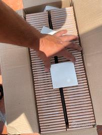 N. 25 mattonelle Bianche 33,3 cm x 33,3 cm spessore 8mm N 14 mattonelle bianche 30,6x 30,6 cm rosso Siena spessore 8mm N111 mattonelle 10x10 cm bianco satinato 8mm spessore N 17 mattonelle bianco 25x 20cm 6 mm spessore N 38 Listelli Legno noce 30x6 cm spessore 1cm