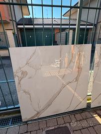 Piastrelle gres effetto marmo rettificate, lotto cosi composto: - 2 piastrelle 120cm x 120cm Vari avanzi dopo taglio: - 2 pistrelle 120cm x 41cm - 2 pistrrlle 120cm x 30cm - 1 pistrella 79cm x 31cm - 1 pistrella 89cm x 31cm Spessore 1cm